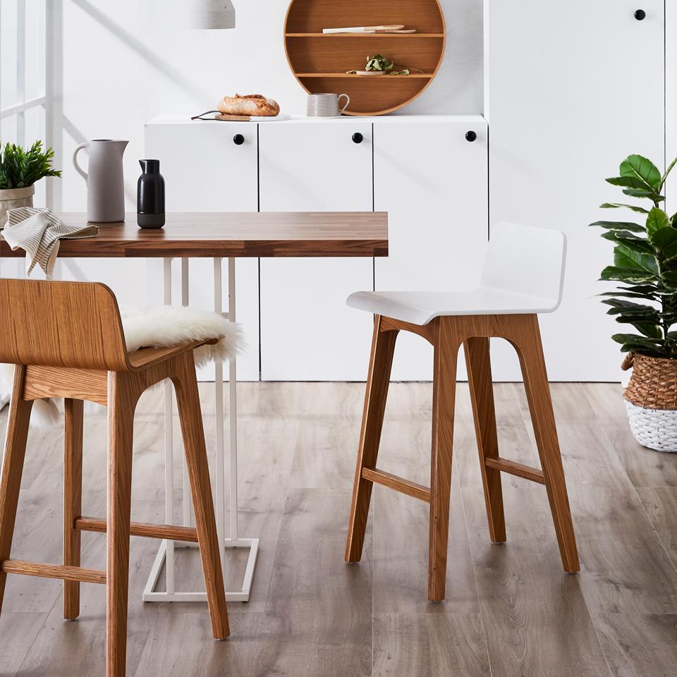 The legs are typically high enough for the seated person's thighs and knees to form a 90° or lesser angle. Used in a number of rooms in homes (e.g. in living rooms, dining rooms, and dens), in schools and offices (with desks), and in various other workplaces, chairs may be made of wood, metal, or synthetic materials, and either the seat alone or the entire chair may be padded or upholstered in various colors and fabrics. Chairs vary in design.
